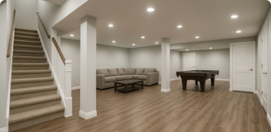 Complete basement build-out including framing, electrical, plumbing, and finishing. Transform your unfinished space into beautiful living areas.